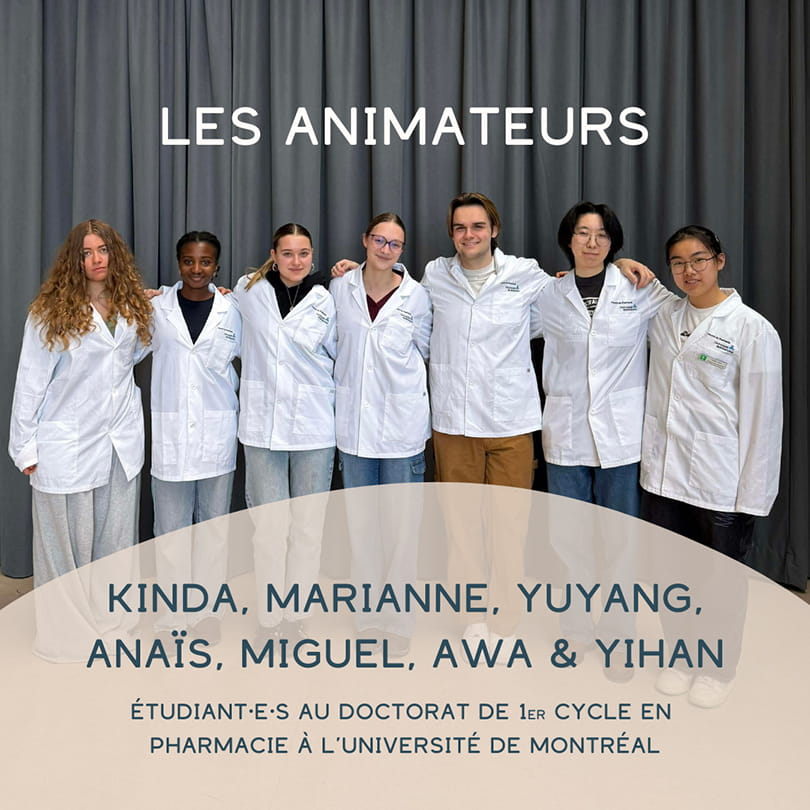 Animée par sept étudiantes de première année en pharmacie de l’Université de Montréal, dans le cadre de leur stage, cette rencontre propose des repères clairs, accessibles et fondés sur des données scientifiques actuelles. L’objectif est de vous aider à mieux comprendre ce que vous ou un proche traversez, et à savoir quand et comment chercher du soutien.
